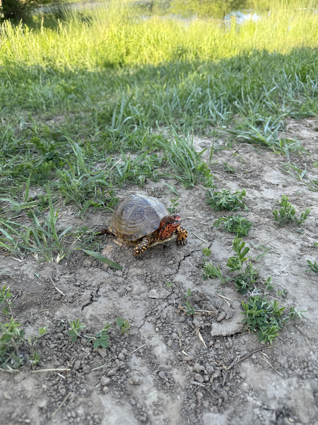 NEVER relocate a box turtle. Research shows that box turtles have homing instincts and can spend all of their energy trying to return to their home. In doing so they will cross roads, railroad tracks and encounter predators all along the way. They are much better off if they can remain in the territory they are familiar with. A turtle may spend its whole life, over 50 years, in an area smaller than three football fields.