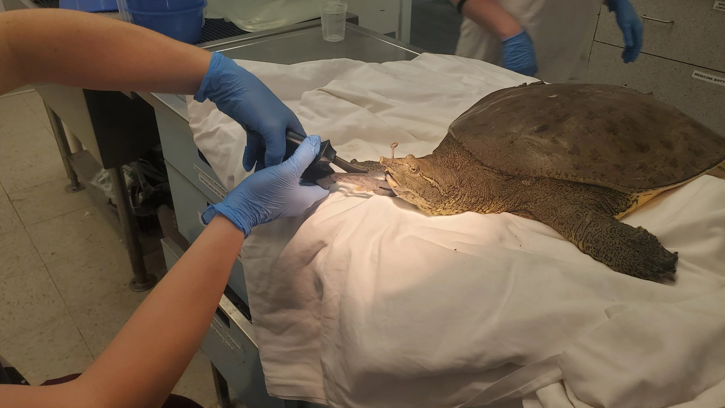 We treat dozens of turtles each year. Most often we see box turtles, which live on land. We often also treat a variety of water turtles including snapping turtles, soft-shelled turtles, and red-eared sliders. Additionally, we see a variety of species of nonvenomous snakes, skinks, and lizards.